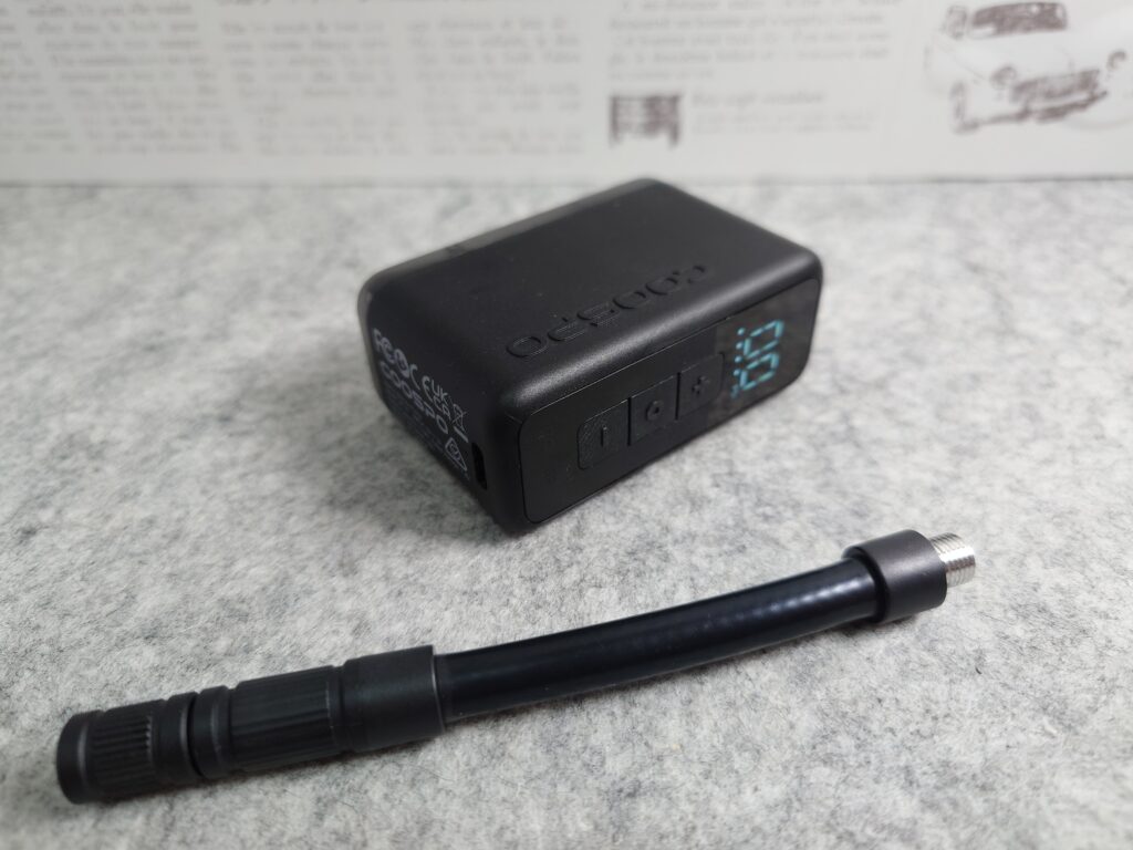 最初に手にした携帯電動ポンプ。結構小ぶりで「こんな小さくて130PSIとか入れられちゃうんだ。。」と驚いた商品です。