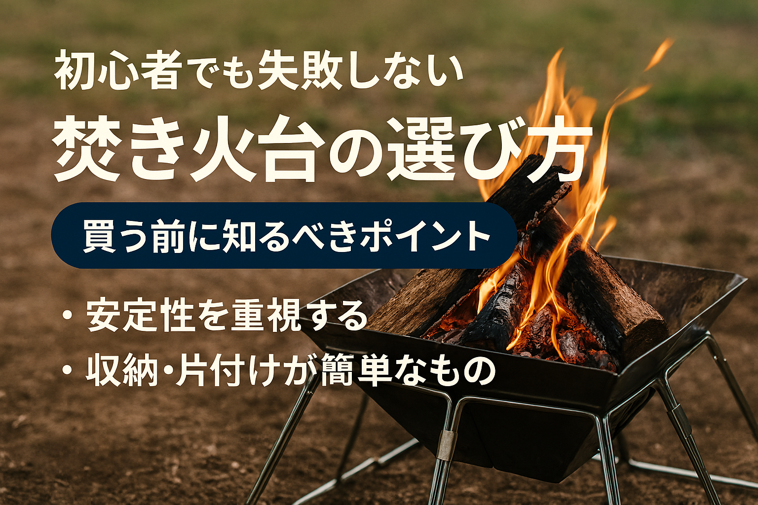 焚き火台選びのポイントは、安定性・組み立てやすさ・片付けやすさの3つです。