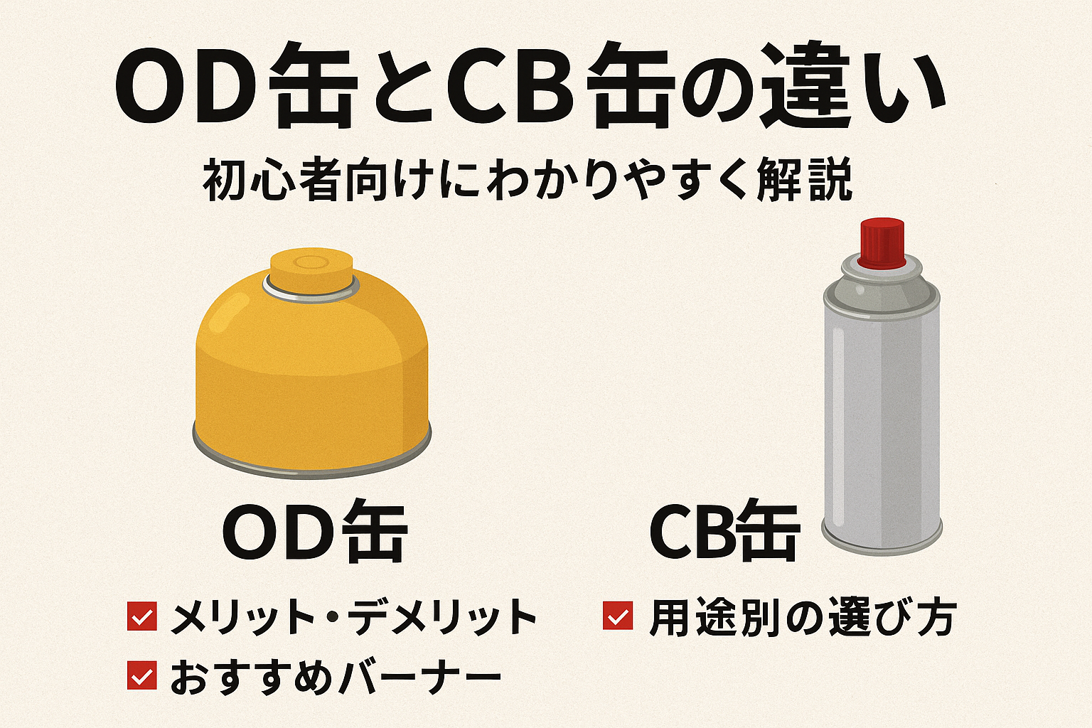 この記事では、OD缶とCB缶の特徴・メリット・デメリット・おすすめバーナー・用途別の選び方まで一気にまとめて解説します。